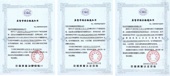 2019年11月11日-12日,中国质量认证中心专家组对我公司质量管理体系、环境管理体系、职业健康安全管理体系进行年度监督审核。