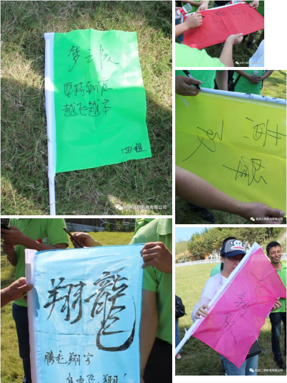 以打破“小团队”、打造“大团队”为出发点,现场根据事先分好的小组,由各小组组长带领绘制队旗,设计队名、口号等环节。
